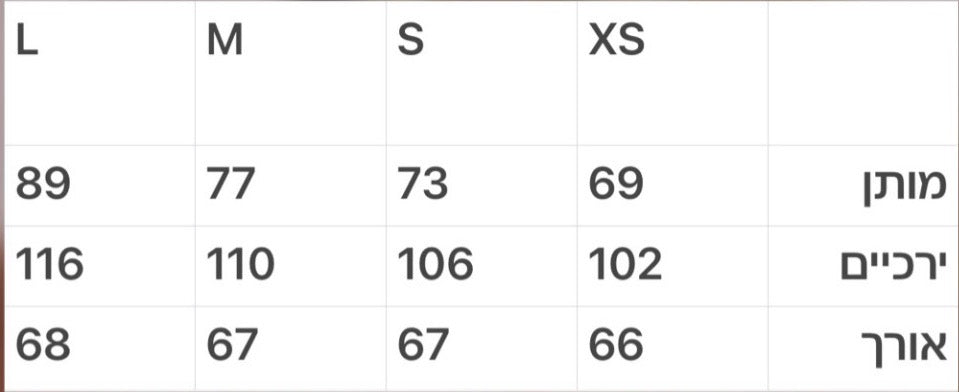 אורך החצאית: 66-68 (החצאית בתמונה מקוצרת ב-10 ס״מ)